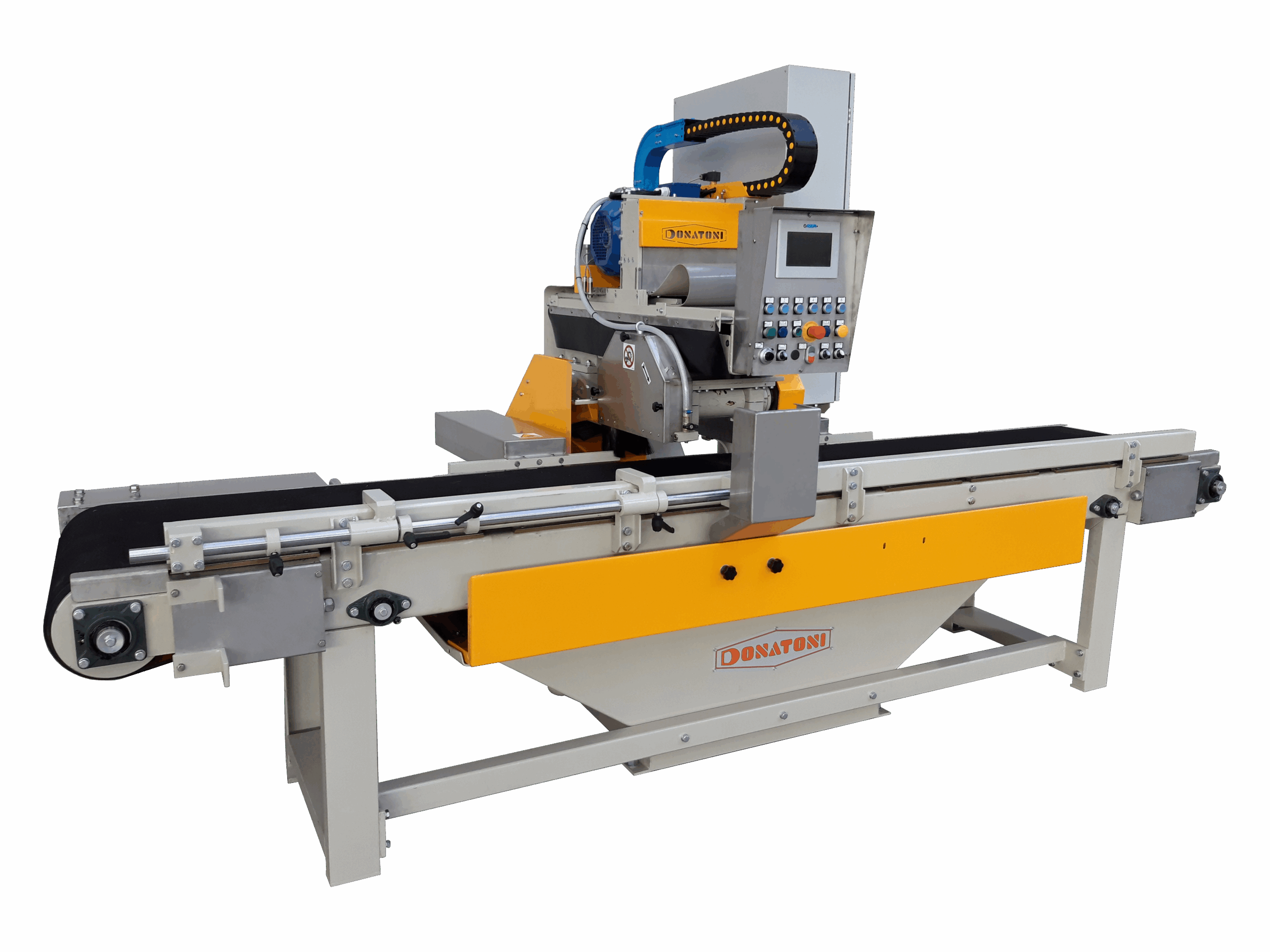 La versione APLX, grazie al DONATONI System X, consente inoltre di tagliare marmo, granito, ceramica e quarzite con lo stesso mandrino, permettendo all’operatore di variare il diametro del disco (300-350-400mm) con una semplice operazione manuale.