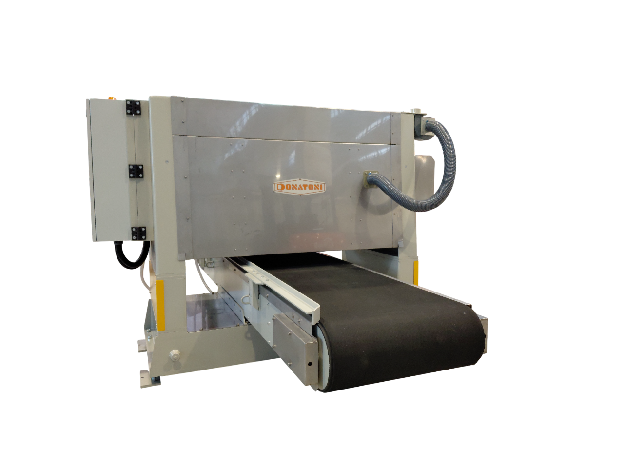 - Il piano d'appoggio formato da nastro in gomma di grosso spessore motorizzato, con velocità d'avanzamento regolabile secondo lo spessore e il tipo di materiale da tagliare