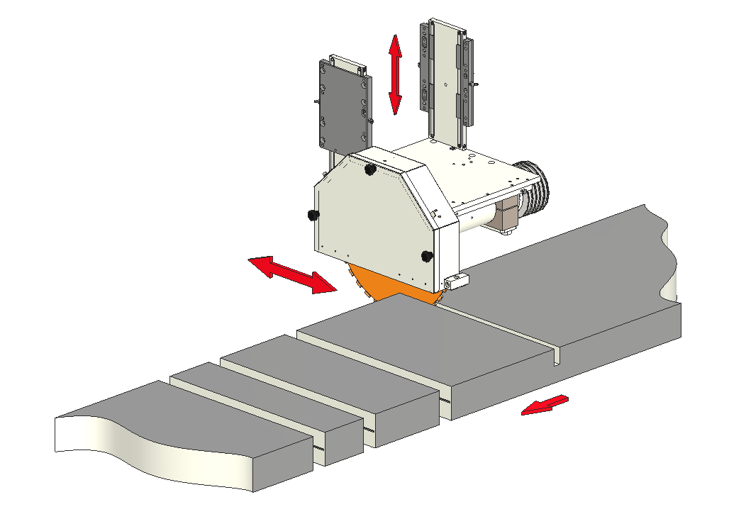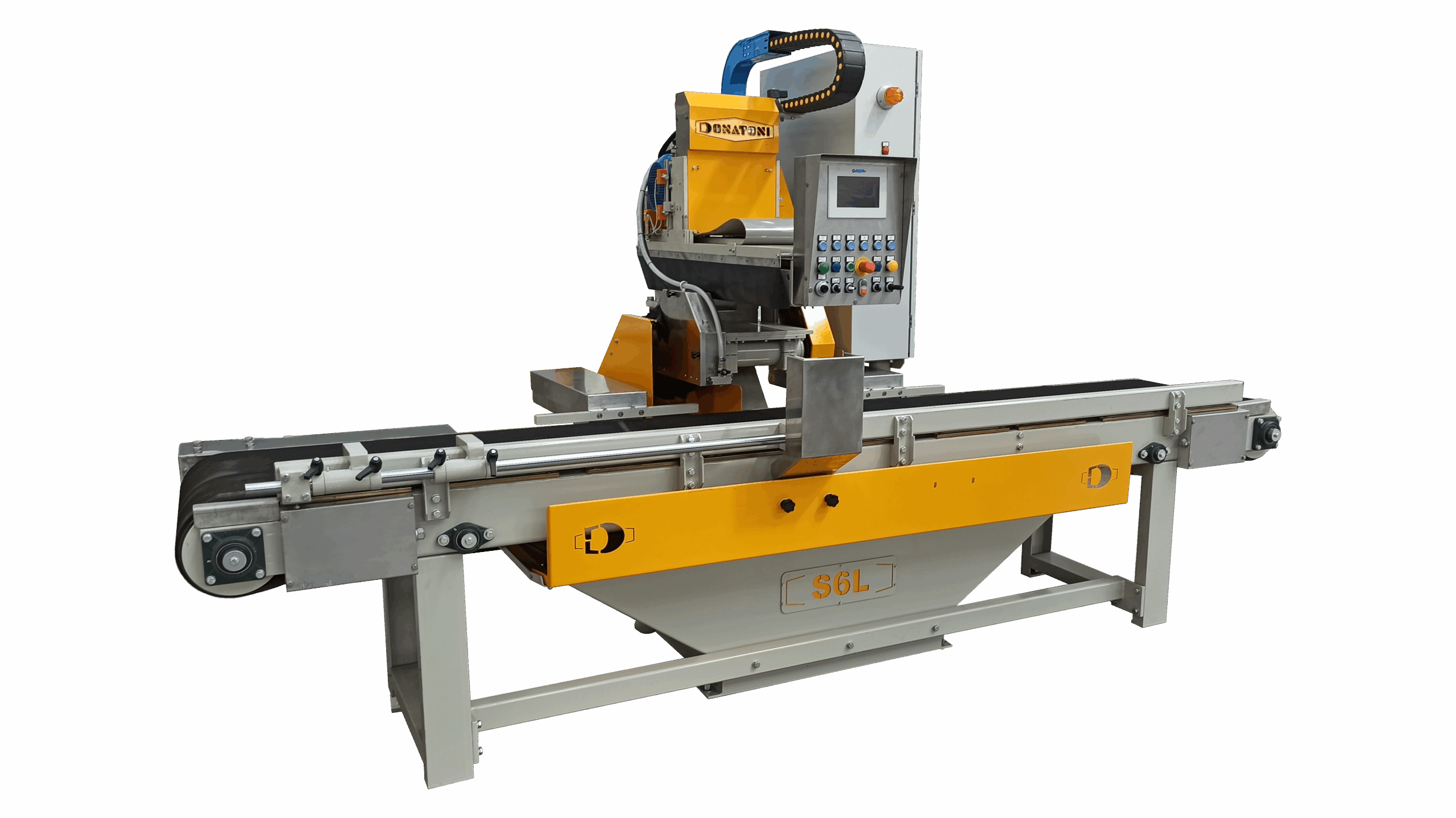 Il modello S6L, grazie al DONATONI System X, consente di tagliare marmo, granito, ceramica e quarzite con lo stesso mandrino. L’operatore di variare il diametro del disco con una semplice operazione manuale.